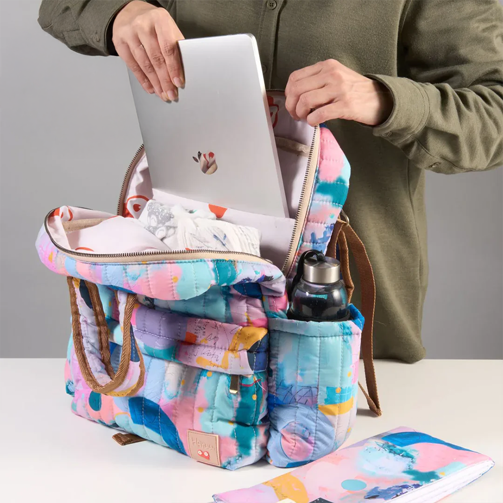 - Fonksiyonel iç düzen: Isı yalıtımlı biberon gözü, alt açma örtüsü bölmesi, puset askısı, laptop gözü ve çoklu ceplerle maksimum düzen sağlar.